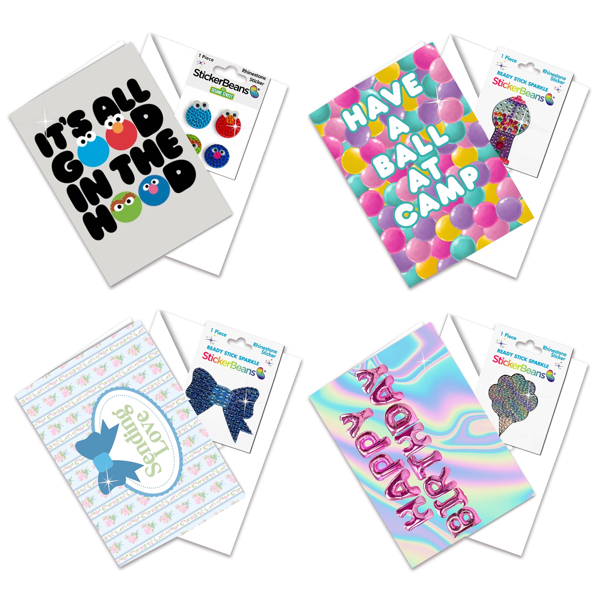 The 4 NEW 2026 Greeting Card & StickerBean Bundle cards are: