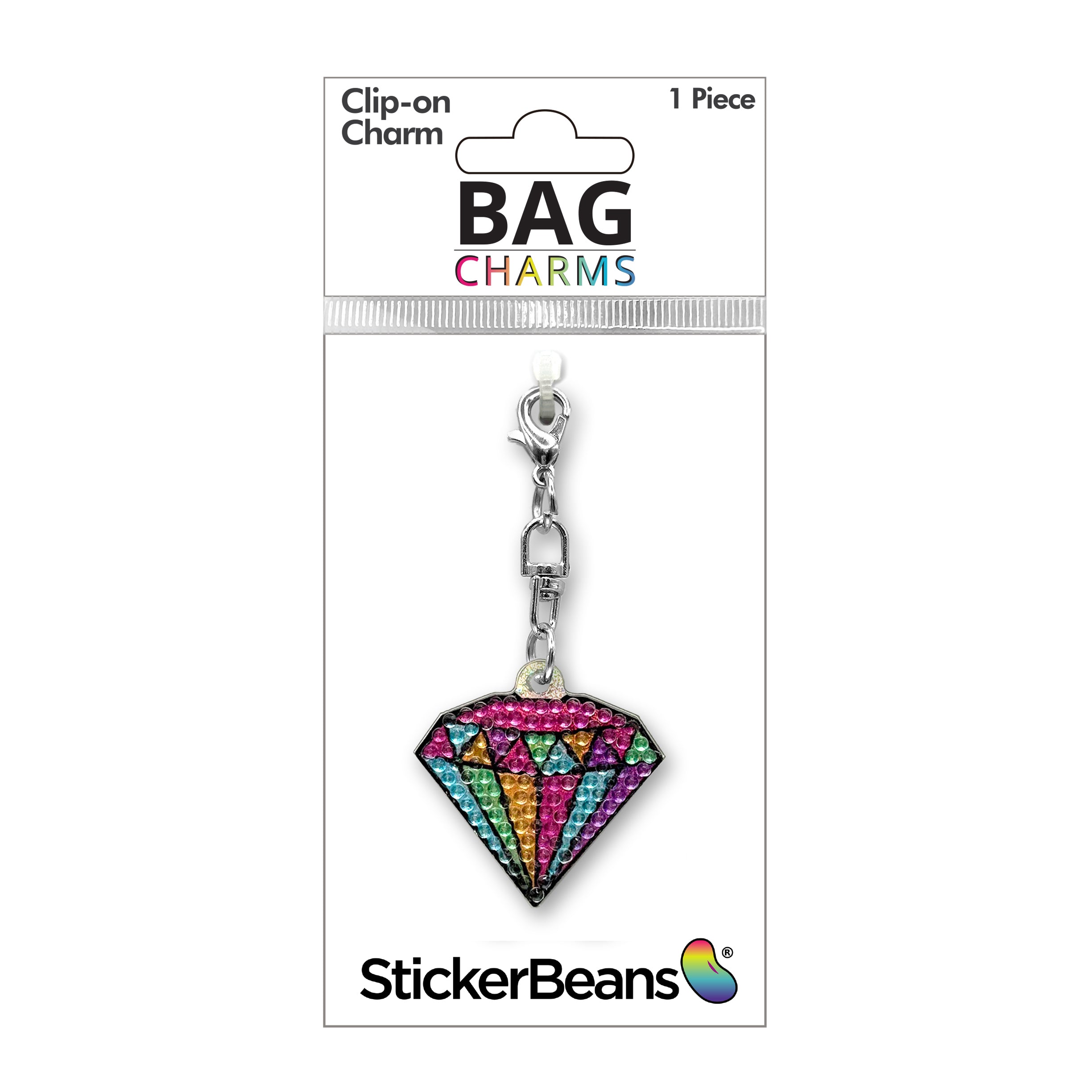 The Diamond Charm is a sparkling rhinestone charm with a shiny metal chain. Clip it onto our super cute charm holder and onto your bag for a touch of sparkle. Curate your bag charm collection today!